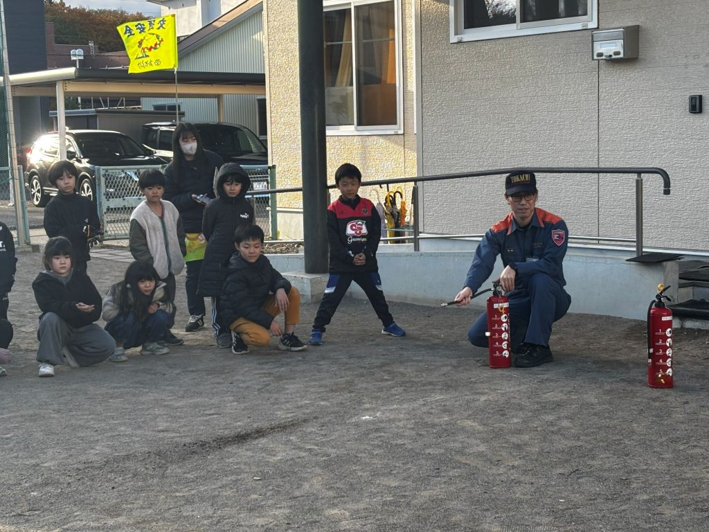 消防の方が来てくれて避難時の様子を見ていただき、とても上手に避難できていると褒めていただきました。