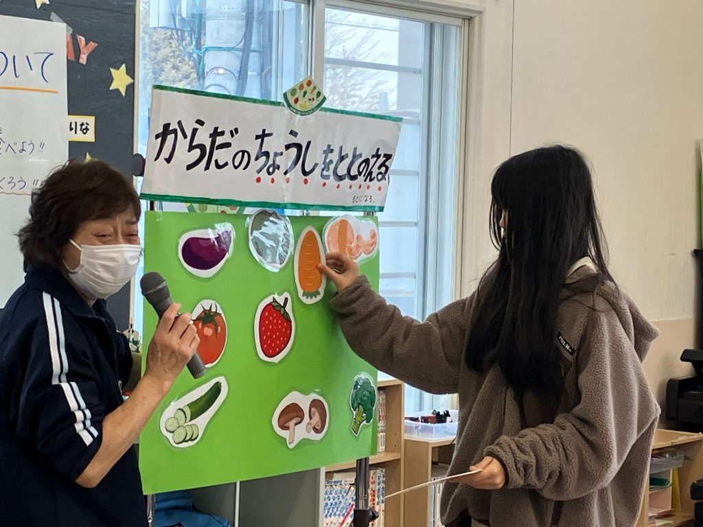 12月24日(水)所長が食べ物の役割を子どもたちに教えてくれました。