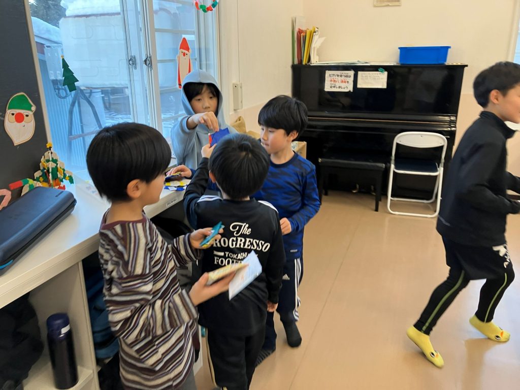 15日(月)は大雪になり皆さん除雪お疲れさまでした。学童では17日(水)に12月の誕生会を行いました。今月は9名のお友達が誕生日を迎えました。当日参加してくれたのは7名でした。